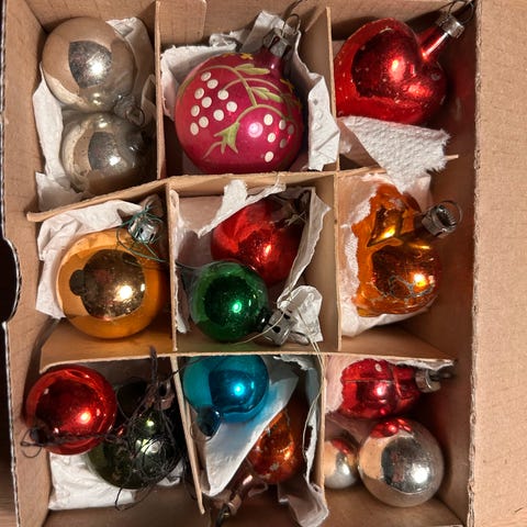 6 gl vintage fine julekugler som snebolde med kristtjørn