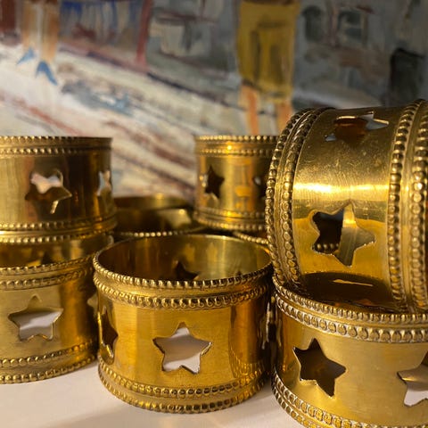 6 smukke servietholdere med sole i messing. Alle 6 er i perfekt stand og sælges for 249kr.