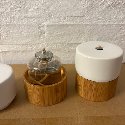 Smukke EGO Together by Mam olielamper i bambus og sort keramik.