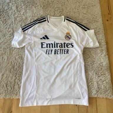 Sælger denne originale Real Madrid hjemmetrøje fra den historiske 23/24 sæson med Jude Bellingham #5 på ryggen. Størrelse Large. Næsten som ny - kun brugt til få særlige lejligheder og ekstremt velholdt.