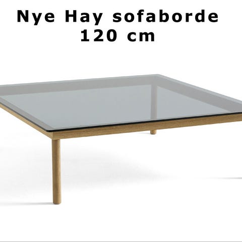 Nye HAY kofi sofaborde: 100 x 100 cm. eg/sort, gråtonet glas
