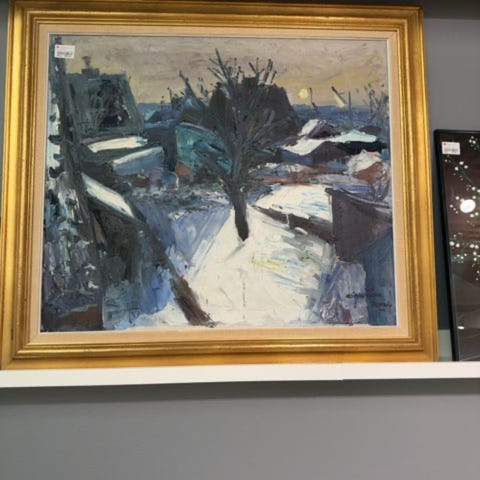 42 x 31 cm i gedin træramme 60 x 48 cm, oliepastel, vandværksgården tølløse,