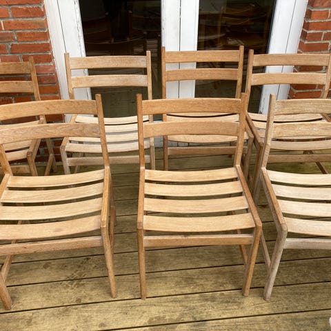 Alle er afrenset, let slebet, fået træpleje, nyt koldskum - og betrukket med enten læder, kunstlæder eller møbelstof hos Professionel Dansk møbelpolstrer 🇩🇰.