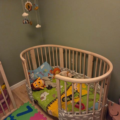 Der medfølger original STOKKE madras og madras-beskyttelse til begge størrelser.