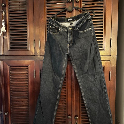 Molo Dreng Jeans i blå farve, størrelse 110. Fremstillet i denimmateriale med elastisk talje og dekorative detaljer på lommerne. Designet til drenge og egnet til daglig brug.