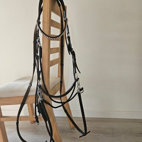 Bidløs trense sælges str full med læder tøjler sælges kun da det for stort tiæ den gamle hest jeg har tilbage