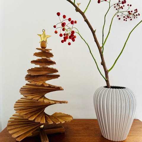 Flot juletræ i teaktræ der kan formes på forskellige måder.