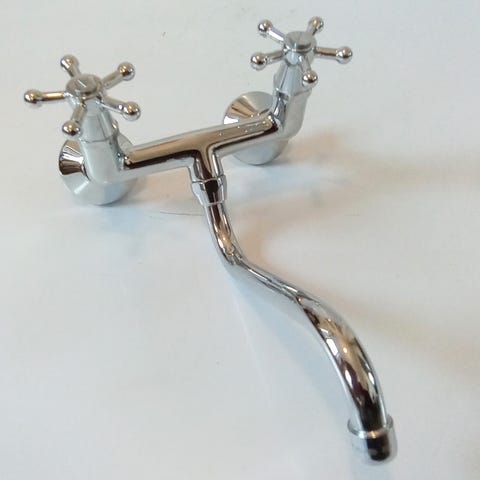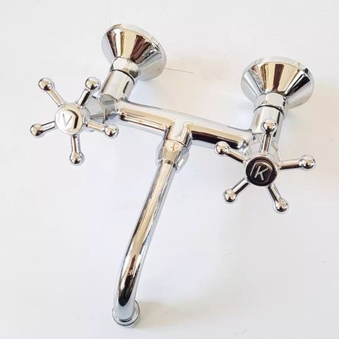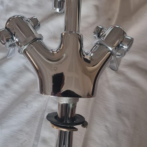 Blandingsbatteriet koster 12.600,- fra nyt og håndvasken koster 3.600,-.