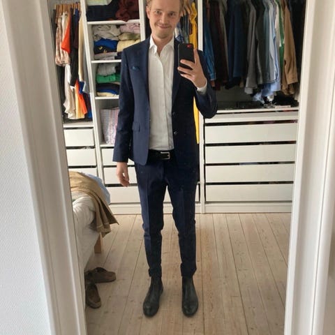 2 stk jakkesæt slim fit størrelse 48, haves i sort og blå