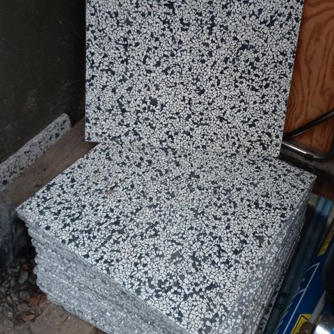 Ægte terrazzo flise i modellen Chicago, står på 1 palle, plus det løse, 20-21m2. Ny pris 14.000. BYYD.