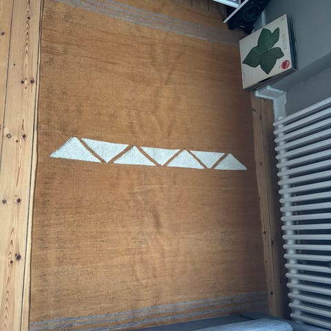 Ægte Tyrkisk håndknyttet Analtolsk tæppe, 107 x 156, uld på uld, nyrenset og i god tilstand. Tæppet er ældre model og er super farverigt med stærke rød, organge og gul farver. Meget unik og bliver et midpunkt i din bolig.
