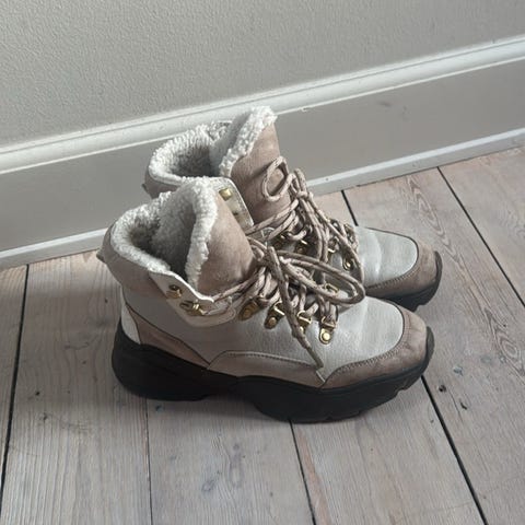 H&M Vinterstøvler i størrelse 36, brun farve. Støvlerne har en blød, isolerende overflade og en gummisål med mønster for bedre greb. Velegnet til brug i kolde og våde vejrforhold.