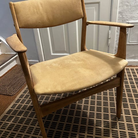 BEMÆRK: Hvidt stof er forslag til hvordan stolene kan ombetrækkes.