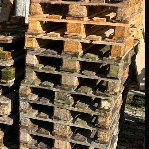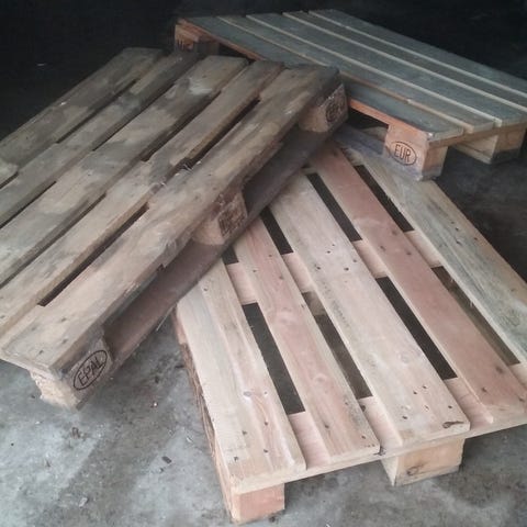 7 stk europaller og 4 stk andre paller - heraf to engelske paller der er lidt bredere end europaller