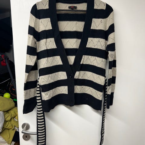 Bruuns Bazaar sweater i sort farve, størrelse M. Strikket materiale med lange ærmer og ribstrikkede detaljer ved ærmer og bund.