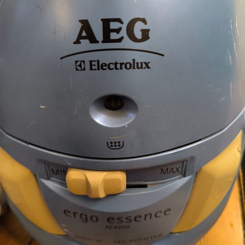 AEG Electrolux støvsuger i sort farve. Udstyret med slange og mundstykke. Designet til almindelig rengøring af gulve og tæpper. Har hjul for nem bevægelse og et håndtag til transport.