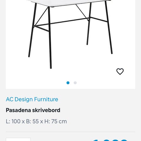 Mindre skrivebord - design MAGNE fra Ilva. Købt i august 2023 - næsten ikke brugt - L89 x H72 x B/D 42,5. Nypris dkk 2.199. Kan afhentes i Hellerup