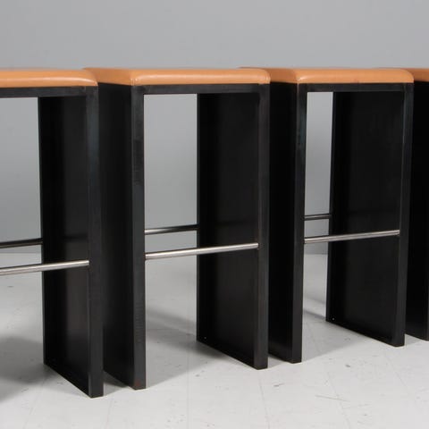 "Moroso Fjord" barstol, høj model (siddehøjde 77cm), designet af Patricia Urquiola. Betrukket med mørk-orange ("zucca" = "græskarfarvet") okselæder. Meget fin stand (ingen mærker/skjolder). Prisen er per styk.