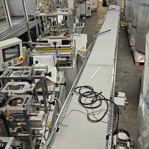 Transportbånd med frembringer bredde 79cm og en total længde på 8 meter