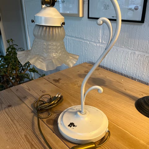 Retro bordlampe i hvid og sort med glaskuppel
