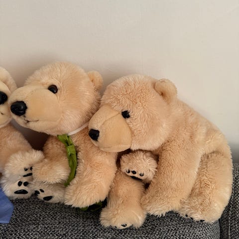 Nuttede bløde og lækre tøjdyr. En isbjørn med unge samt en panda med unge. Derudover to små dyr. Sælges samlet for 150kr.