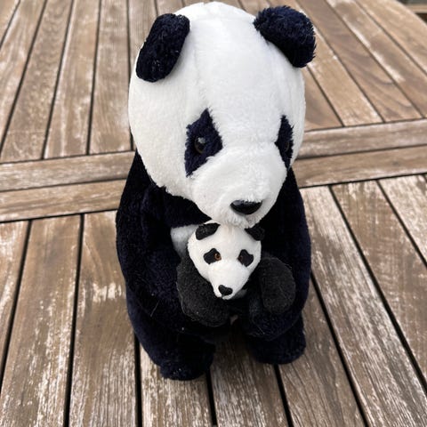 Panda og isbjørn med hver sin unge i favnen