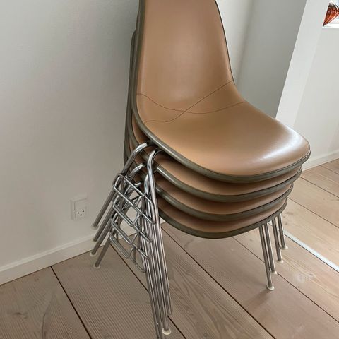 Eames, 4 stk. originale Charles Eames, Herman Miller, DSW spisebordsstole i glasfiber i farven Elephant Gray med ben i valnød,