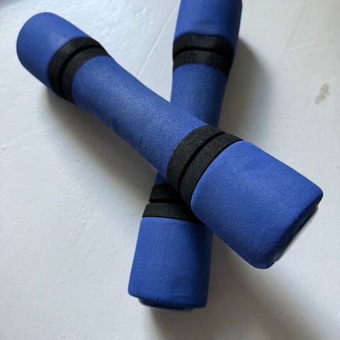 Gule aerobic håndvægt med holdbar neoprenoverflade, der sikrer et sikkert greb og forhindrer, at vægten glider ud under selv de mest intensive træningsøvelser..
