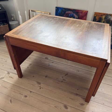 Sofabord model 5362, kirsebær træ og 2 klapper som kan forlænge sofabordet op til 160 cm.