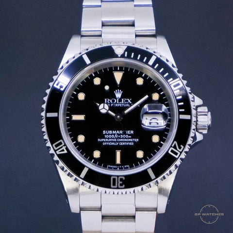 En klassiker fra Rolex, hvor luksus møder funktionalitet. Denne Submariner kombinerer stål og 18 karat guld med en sort skive og aluminiums lynette, hvilket giver et både sporty og eksklusivt udtryk. Et ikonisk dykkerur med automatisk urværk og den tidløse kvalitet, som kun Rolex kan levere – perfekt til både hverdag og formelle lejligheder.