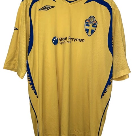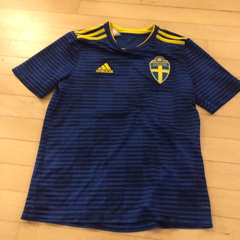 03 - Adidas Sverige Fodboldtrøje i størrelse XL. Trøjen har gule og blå farver og er designet til fodbold. Materialet er ikke specificeret, men trøjen er en officiel sportsmodel med Sverige-motiv. Med autografer.