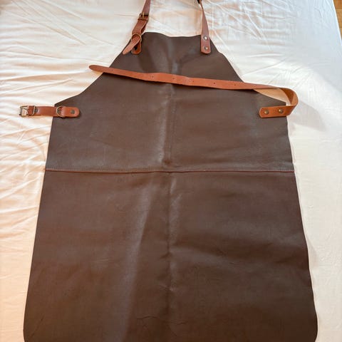 Nyt Læderforklæde sort læder med brune læder stropper