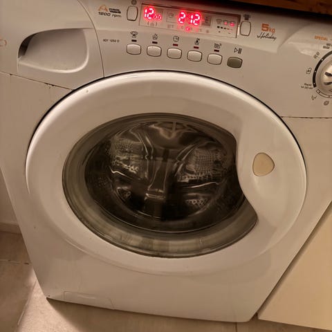 Den er kun til let vask - se kapacitet på billederne i annoncen.