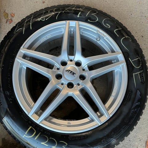 Hjulene står og skal afhentes ved Lysdahl Simonsen i Silkeborg.