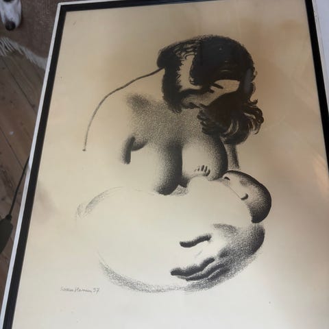 Mor og barn litografi