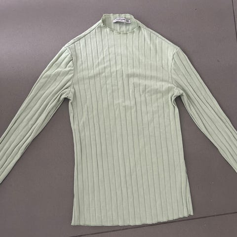 Stradivarius bluser i grå farve, størrelse S. blusen har en har en ribstrikket tekstur og lange ærmer.