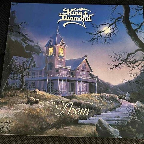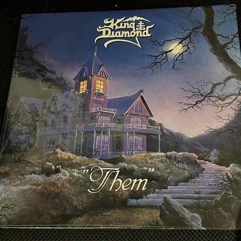 King Diamond "Them" (Roadrunner) 1988. Picture Disc, med motiv af "Amon" i nattemørke omgivelser. Første del af historien "Them"/Conspiracy.