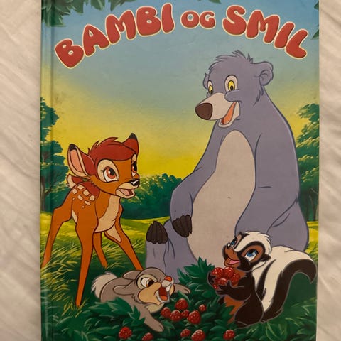 Disney Bambi og Smil Børnebog i dansk sprog, hardcover udgave fra 1998. Bogen indeholder farverige illustrationer og fortæller historien om Bambi og hans venner i skoven. ISBN 87-608-0976-0.