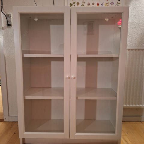 Vitrine med lys og glashylder