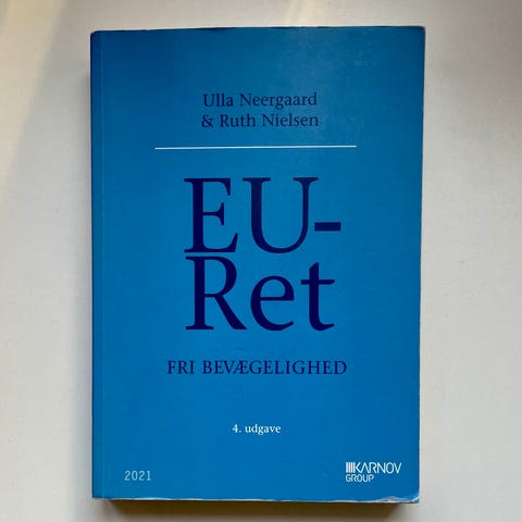 Ulla Neergaard & Ruth Nielson EU-Ret retsvidenskab lærebog med fokus på fri bevægelighed. 4. udgave, udgivet i 2021. Der er en del overstregninger i bogen, hvilket kan ses på billederne. Derudover er bogen i rigtig fin stand. Kan bruges til faget EU-Ret på KU jura 3. semester