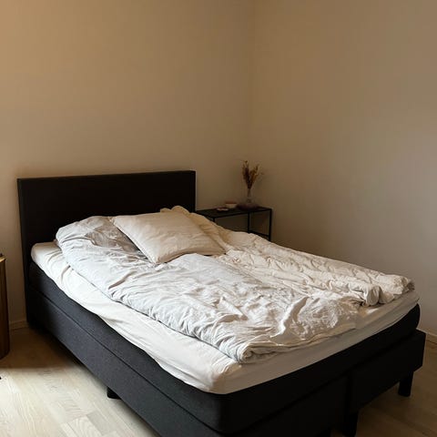 Ikea seng med madras og tempur madras og topmadras.