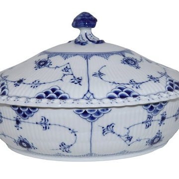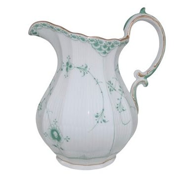 Royal Copenhagen Grøn Musselmalet halvblonde med guldkanter. 3 kopper og 1 tallerken. Alle dele har fejl. Tallerken har skår og kopper har revner, se fotos. Samlet pris for 4 dele.