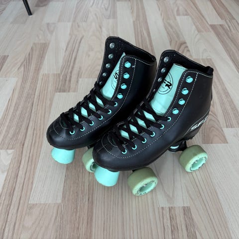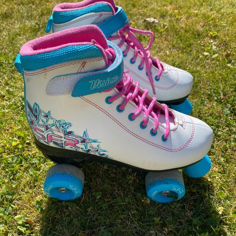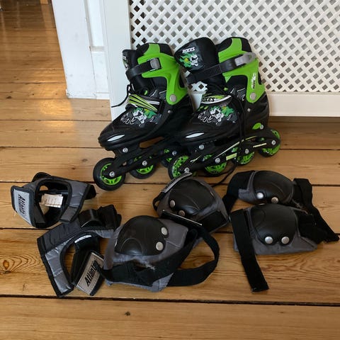 Vi har fire par seje rulleskøjter i størrelse 36–38. Et par kan også justeres i størrelsen (se billede. Pris per set: 250kr