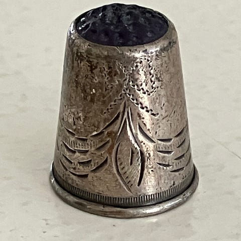 To fingerbøl af sølv, rød og blå top