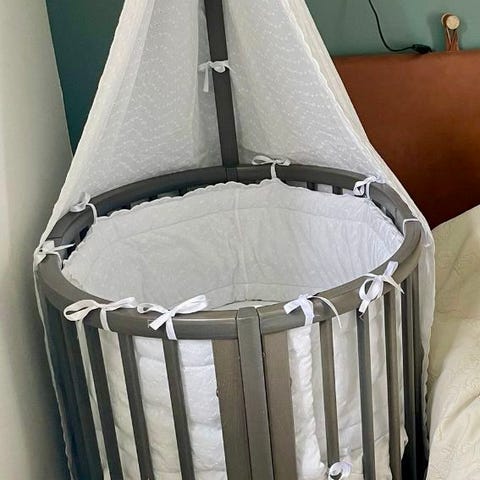 Medfølger original madras og 3 originale lagner fra stokke. Ingen pletter. Betrækket til madrassen er lidt nulret, som ses på billed 4.