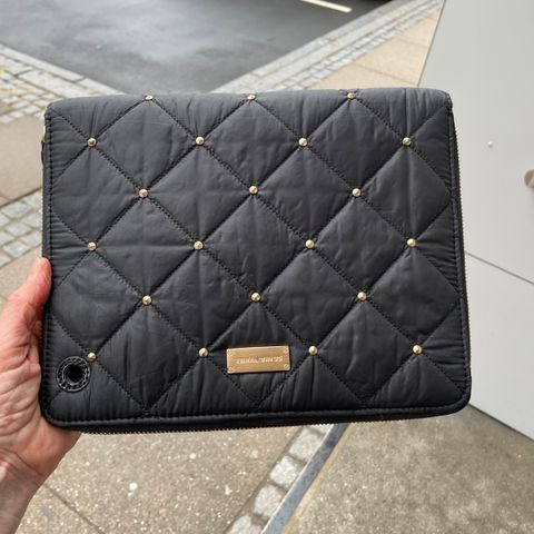 Sonia Rykiel Paris sort læder skuldertaske. Tasken er fremstillet i læder med aftagelig skulderrem. Den indeholder flere indvendige lommer herunder en med lynlås. Tasken indre er foret med stof i en mørkerød nuance. Tasken har guldfarvet metaldetaljer og er dekoreret med Sonia Rykiel logo