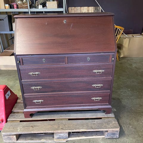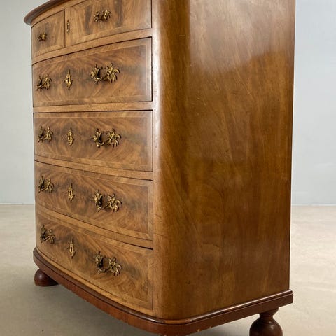 Mahogni kommode med fire låsbare skuffer den øverste skuffe har tre indvendige rum med låg.