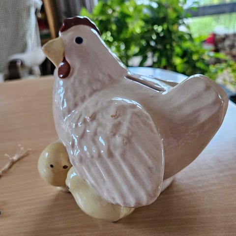 Sparebøsser høns. Retro Keramisk høne af H. A. Kähler, HAK. Designet af Erik Stockmarr i 1949.