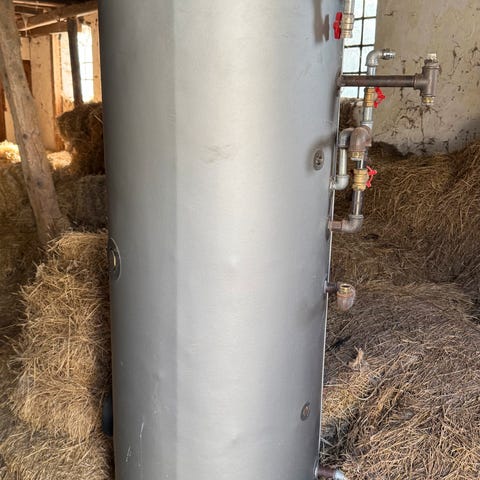1 stk. beholder 300ltr, 3 stk. solceller L-220 cm, B- 127 cm. samt div. Udstyr.