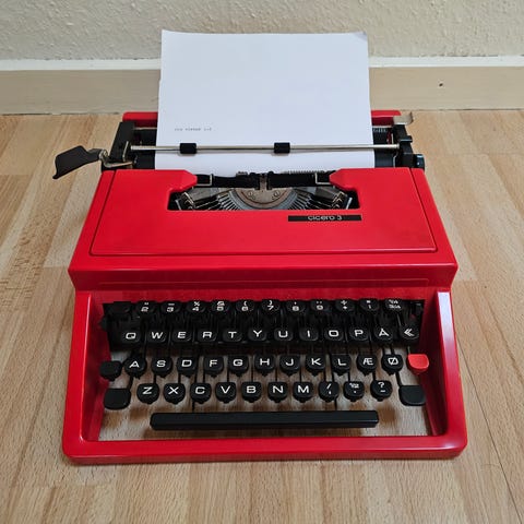 Fin og dekorativ gammel skrivemaskine. Fungerer ikke rigtigt, men kan måske repareres.